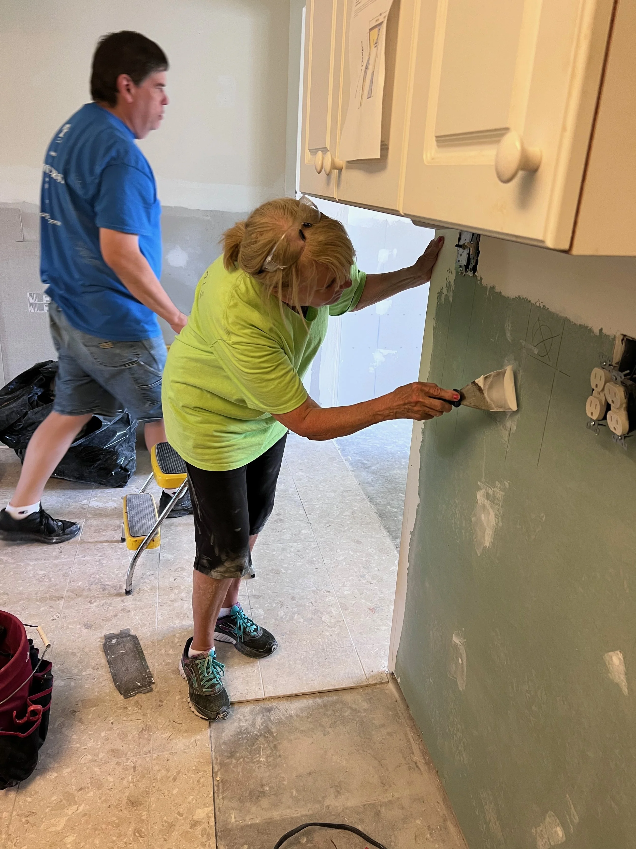 After lunch it was back to work at Jim and Marvin’s home. Lois was able to all the jobs related to wall boarding. She was most impressive!